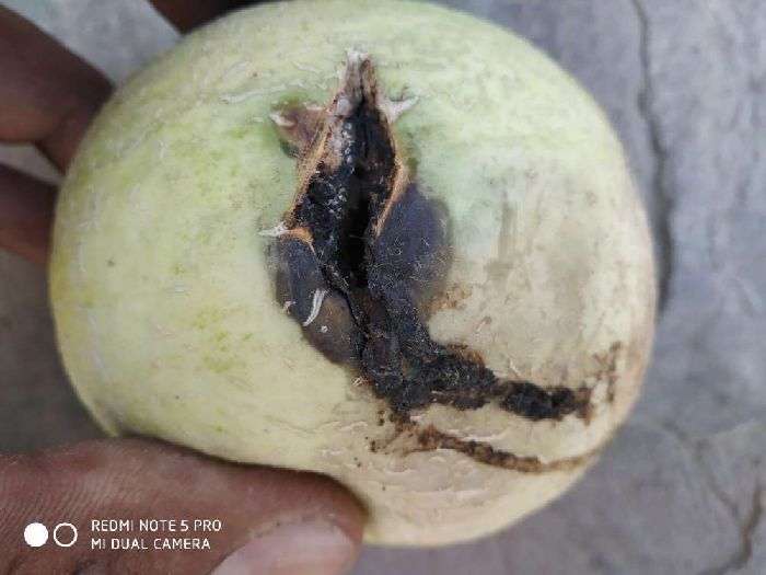 Iss par fungus ka hmla hua hai, iske liye aap carbendazim @ 3gm prati litre pani ke hisab se dalein.