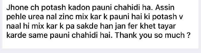 sukhwinder g potash nu khet tyaar krde sme paa skde ho...uss sme na hi urea pauni hai ate na hi DAP pauni hai ..sirf potash pao...