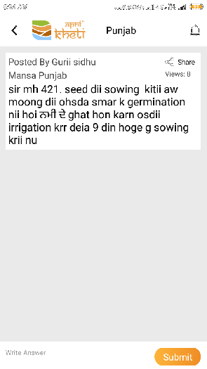 भगवंत जी कृपया बताएं कि आप इसकी पनीरी की बात कर रहे है या मुख्य खेत में बिजाई के बारे में जानकारी लेना चाहते है ताकि आपको इसके बारे में जानकारी दी जा सके