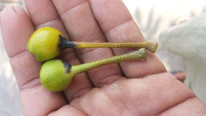 ਇਹ ਸਮੱਸਿਆ ਫੰਗਸ ਕਾਰਨ ਆ ਰਹੀ ਹੈ, ਇਸਦੀ ਰੋਕਥਾਮ ਲਈ ਤੁਸੀਂ Copper oxychloride @3 gm ਪ੍ਰਤੀ ਲੀਟਰ ਪਾਣੀ ਦੇ ਹਿਸਾਬ ਨਾਲ ਸਪਰੇਅ ਕਰ ਸਕਦੇ ਹੋ