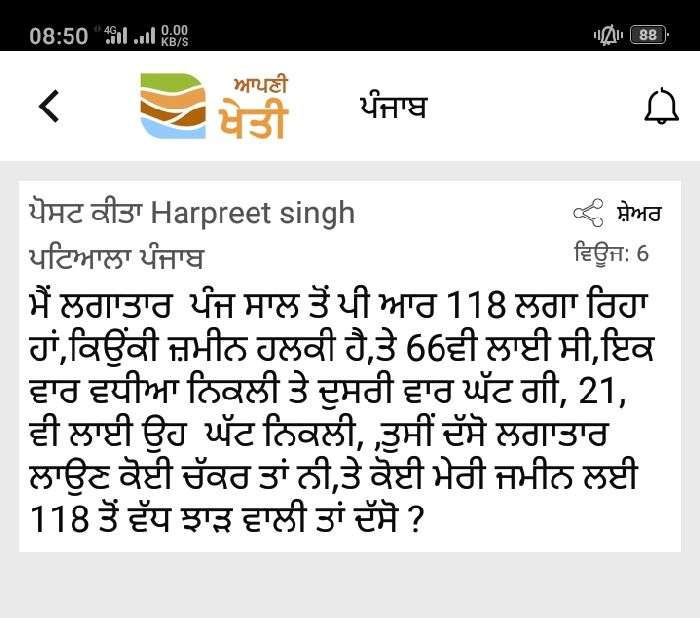 202:- ਇਸਦਾ ਝਾੜ 31 ਕੁਇੰਟਲ ਪ੍ਰਤੀ ਏਕੜ ਤਕ ਹੁੰਦਾ ਹੈ ਧੰਨਵਾਦ
