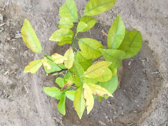 gurpreet ji fal nui dekhe bina boote bare kuch nahi keha ja sakda isnu tat di kami hai isde layi tuc zinc sulphate@3gm nu prati litre pani de hisab nal spray karo.is to ilava boote nu 3-4 killo vermi compost pao.dhanwad