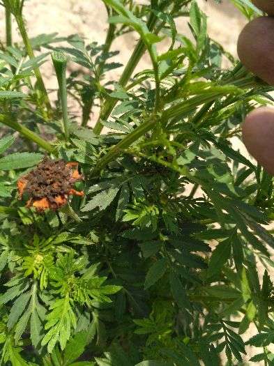 ਗੇਂਦੇ ਨੂੰ ਕਈ ਤਰ੍ਹਾਂ ਦੀ ਮਿੱਟੀ ਵਿੱਚ ਉਗਾਇਆ ਜਾ ਸਕਦਾ ਹੈ ਇਹ ਵਧੀਆ ਨਿਕਾਸ ਵਾਲੀ ਉਪਜਾਊ ਮਿੱਟੀ ਵਿੱਚ ਬਹੁਤ ਵਧੀਆ ਉਗਦੀ ਹੈ ਮਿੱਟੀ ਵਧੀਆ ਨਿਕਾਸ ਵਾਲੀ ਹੋਣੀ ਚਾਹੀਦੀ ਹੈ, ਇਹ ਫਸਲ ਪਾਣੀ ਨੂੰ ਰੋਕਣ ਵਾਲੀ ਮਿੱਟੀ ਵਿੱਚ ਸਥਿਰ ਨਹੀਂ ਰਹਿ ਸਕਦੀ ਮਿੱਟੀ ਦੀ pH 6.5 ਤੋਂ 7.5 ਹੋਣੀ ਚਾਹੀਦੀ ਹੈ ਤੇਜ਼ਾਬੀ ਅਤੇ ਖਾਰੀ ਮਿੱਟੀ ਇਸ ਦੀ ਖੇਤੀ ਲਈ ਅਨੁਕੂਲ ਨਹੀਂ ਹੈ ਫਰੈਂਚ ਗੇਂਦੇ ਦੀ ਕਿਸਮ ਹਲਕੀ ਮਿੱਟੀ ਵਿੱਚ ਵਧੀਆ ਵਿਕਾਸ ਕਰਦੀ ਹੈ, ਜਦ ਕਿ ਅਫਰੀਕਨ ਗੇਂਦੇ ਦੀ ਕਿਸਮ ਜਿਆਦਾ ਜੈਵਿਕ ਖਾਦ ਵਾਲੀ ਮਿੱਟੀ ਵਿੱਚ ਵਿਕਾਸ ਕਰਦੀ ਹੈ ਪ੍ਰਸਿੱਧ ਕਿਸਮਾਂ:- African Marigold: ਇਹ ਕਿਸਮ 90 ਸੈ. ਮੀ. ਲੰਬੀ ਹੁੰਦੀ ਹੈ ਇਸਦੇ ਫੁੱਲ ਆਕਾਰ ਵਿੱਚ ਵੱਡੇ ਅਤੇ ਲੈਮਨ, ਪੀਲੇ, ਸੁਨਹਿਰੇ, ਸੰਤਰੀ ਅਤੇ ਗੁੜੇ ਪੀਲੇ ਰੰਗ ਦੇ ਹੁੰਦੇ ਹਨ ਇਹ ਲੰਬੇ ਸਮੇਂ ਦੀ ਕਿਸਮ ਹੈ ਇਸ ਦੀਆਂ ਕਈ ਹੋਰ ਕਿਸਮਾਂ ਜਿਵੇਂ ਕਿ Giant Double African Orange, Crown of Gold, Giant Double African Yellow, Chrysanthemum Charm, Golden Age, Cracker Jack ਆਦਿ ਹਨ French Marigold: ਇਹ ਛੋਟੇ ਕੱਦ ਦੀ ਅਤੇ ਜਲਦੀ ਪੱਕਣ ਵਾਲੀ ਕਿਸਮ ਹੈ ਇਸਦੇ ਫੁੱਲ ਆਕਾਰ ਵਿੱਚ ਛੋਟੇ ਅਤੇ ਪੀਲੇ, ਸੰਤਰੀ, ਸੁਨਹਿਰੇ ਪੀਲੇ, ਲਾਲ ਜੰਗੀ ਅਤੇ ਭੂਰਾ-ਲਾਲ ਰੰਗ ਦੇ ਹੁੰਦੇ ਹਨ ਇਸ ਦੀਆਂ ਕਈ ਹੋਰ ਕਿਸਮਾਂ ਜਿਵੇਂ ਕਿ Rusty Red, Butter Scotch, Red Borcade, Star of India, Lemon drop ਆਦਿ ਹੈ Pusa Basanti Gainda: ਇਹ ਲੰਬੇ ਸਮੇਂ ਦੀ ਕਿਸਮ ਹੈ ਇਸਦਾ ਪੌਦਾ 58.80 ਸੈ.ਮੀ. ਲੰਬਾ ਅਤੇ ਇਸਦੇ ਪੱਤੇ ਗੁੜੇ ਹਰੇ ਰੰਗ ਦੇ ਹੁੰਦੇ ਹਨ ਇਸਦੇ ਫੁੱਲ ਗੰਧਕ ਵਰਗੇ ਪੀਲੇ, ਦੋਹਰੇ ਅਤੇ ਕਾਰਨੇਸ਼ਨ ਕਿਸਮ ਦੇ ਹੁੰਦੇ ਹਨ Pusa Narangi Gainda: ਫੁੱਲ ਨਿਕਲਣ ਦੇ ਲਈ 125-136 ਦਿਨਾਂ ਦੀ ਲੌੜ ਹੁੰਦੀ ਹੈ ਇਸਦਾ ਪੌਦਾ ਲੰਬਾ ਅਤੇ 73.30 ਸੈ.ਮੀ. ਕੱਦ ਦਾ ਹੁੰਦਾ ਹੈ ਅਤੇ ਪੱਤੇ ਗੁੜੇ ਹਰੇ ਰੰਗ ਦੇ ਹੁੰਦੇ ਹਨ ਇਸਦੇ ਫੁੱਲ ਸੰਤਰੀ ਰੰਗ ਦੇ ਅਤੇ ਕਾਰਨੇਸ਼ਨ ਕਿਸਮ ਦੇ ਹੁੰਦੇ ਹਨ ਫੁੱਲ ਸੰਘਣੇ ਅਤੇ ਦੋਹਰੀ ਪਰਤ ਵਾਲੇ ਹੁੰਦੇ ਹਨ ਇਸਦੇ ਤਾਜ਼ੇ ਫੁੱਲਾਂ ਦਾ ਝਾੜ 140 ਕੁਇੰਟਲ ਪ੍ਰਤੀ ਏਕੜ ਹੁੰਦਾ ਹੈ ਮਿੱਟੀ ਨੂੰ ਭੁਰਭੂਰਾ ਹੋਣ ਤੱਕ ਖੇਤ ਨੂੰ ਜੋਤੋ ਮਿੱਟੀ ਦੀ ਉਪਜਾੳ ਸ਼ਕਤੀ ਵਧਾੳਣ ਲਈ ਆਖਿਰ ਵਿੱਚ ਖੇਤ ਜੋਤਣ ਦੇ ਸਮੇਂ 250 ਕੁਇੰਟਲ ਰੂੜੀ ਦੀ ਖਾਦ ਅਤੇ ਗਾਂ ਦਾ ਗੋਬਰ ਮਿੱਟੀ ਚ ਮਿਲਾਓ ਗੇਂਦੇ ਦੀ ਬਿਜਾਈ ਇੱਕ ਸਾਲ ਵਿੱਚ ਕਿਸੇ ਵੀ ਸਮੇਂ ਕੀਤੀ ਜਾ ਸਕਦੀ ਹੈ ਮੀਂਹ ਦੇ ਮੋਸਮ ਵਿੱਚ ਇਸਦੀ ਬਿਜਾਈ ਅੱਧ ਜੂਨ ਤੋਂ ਅੱਧ ਜੁਲਾਈ ਵਿੱਚ ਕਰੋਂ ਸਰਦੀਆਂ ਵਿੱਚ ਇਸਦੀ ਬਿਜਾਈ ਅੱਧ ਸੰਤਬਰ ਤੋਂ ਅੱਧ ਅਕਤੂਬਰ ਵਿੱਚ ਪੂਰੀ ਕਰ ਲਓ ਫਾਸਲਾ ਨਰਸਰੀ ਬੈੱਡ 3x1 ਮੀਟਰ ਆਕਾਰ ਦੇ ਤਿਆਰ ਕਰੋਂ ਗਾਂ ਦਾ ਗੋਬਰ ਮਿਲਾਓ ਬੈੱਡਾ ਨੂੰ ਪਾਣੀ ਦਿਓ ਅਤੇ ਨਮੀ ਬਣਾਏ ਰੱਖੋ ਸੁੱਕੇ ਫੁੱਲਾਂ ਦਾ ਚੂਰਾ ਕਰਕੇ ਉਨ੍ਹਾਂ ਨੂੰ ਕਤਾਰਾਂ ਅਤੇ ਬੈੱਡਾ ਤੇ ਛਿੱੜਕ ਦਿਓ ਜਦੋਂ ਪੌਦਿਆਂ ਦਾ ਕੱਦ 10-15 ਸੈ.ਮੀ. ਹੋ ਜਾਵੇਂ ਤਾਂ ਇਹ ਪਨੀਰੀ ਲਗਾਉਣ ਲਈ ਤਿਆਰ ਹੁੰਦੇ ਹਨ ਫਰੈਂਚ ਕਿਸਮ ਨੂੰ 35x35 ਸੈ.ਮੀ. ਅਤੇ ਅਫਰੀਕੀ ਕਿਸਮ ਨੂੰ 45x45 ਸੈ.ਮੀ, ਦੇ ਫਾਸਲੇ ਤੇ ਪਨੀਰੀ ਲਾਉ ਨਰਸਰੀ ਬੈੱਡਾ ਤੇ ਬੀਜਾਂ ਦਾ ਛਿੱੜਕਾਅ ਕਰੋਂ ਬਿਜਾਈ ਦੇ ਲਈ ਪਨੀਰੀ ਵਾਲੇ ਢੰਗ ਦੀ ਵਰਤੋਂ ਕੀਤੀ ਜਾਂਦੀ ਹੈ ਬੀਜ ਦੀ ਮਾਤਰਾ ਇੱਕ ਏਕੜ ਖੇਤ ਵਿੱਚ 600 ਗ੍ਰਾਮ ਤੋਂ 800 ਗ੍ਰਾਮ ਬੀਜਾਂ ਦੀ ਲੌੜ ਹੁੰਦੀ ਹੈ ਜਦੋ ਫਸਲ 30-45 ਦਿਨ ਦੀ ਹੋ ਜਾਵੇਂ, ਤਾਂ ਇਸਨੂੰ ਸਿਰੇ ਤੋਂ ਕੱਟ ਦਿਓ ਇਸ ਨਾਲ ਪੌਦੇ ਨੂੰ ਝਾੜੀਦਾਰ ਅਤੇ ਸੰਘਣਾ ਹੋਣ ਚ ਮਦਦ ਮਿਲਦੀ ਹੈ, ਇਸ ਨਾਲ ਫੁੱਲਾਂ ਦੀ ਕੁਆਲਿਟੀ ਅਤੇ ਵਧੀਆ ਆਕਾਰ ਮਿਲਦਾ ਹੈ ਸ਼ੁਰਆਤ ਵਿੱਚ ਖਰਾਕ ਦੇ ਤੋਰ ਤੇ ਵਧੀਆ ਵਿਕਾਸ ਲਈ ਨਾਈਟ੍ਰੋਜਨ 32 ਕਿਲੋ (ਯੂਰੀਆ 70 ਕਿਲੋ), ਫਾਸਫੋਰਸ 16 ਕਿਲੋ (ਐਸ ਐਸ ਪ