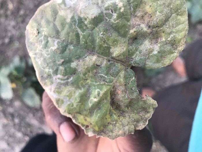 Gora sidhu g ihh jyaada nami de kaarn gal rhe hnn...iss de upper upl di saaf@500gm per acre ja M-45@400gm ja Z-78@400gm nu 150ltr pani de hisaab nal mix kr ke spray kr skde ho. Desi trike de lyi tuc khatti lassi 4 ltr prati 100ltr pani de vich mix kr ke kille de upper spray kr skde ho.