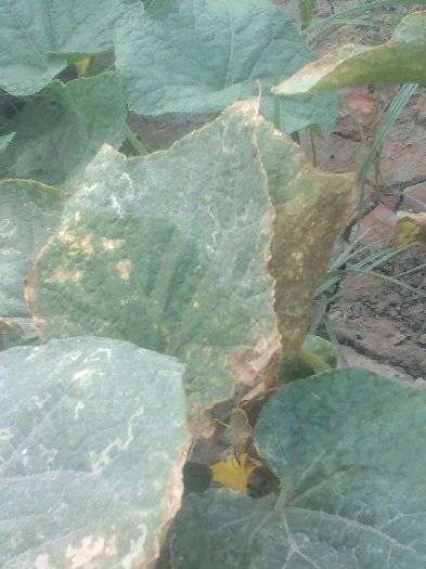 खीरे के पत्ते फंगस के कारण जल रहे है इसके लिए आप M-45@4gram या carbendazim@3gm को प्रति लीटर पानी के हिसाब से स्प्रे करें