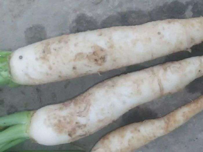 मूली के कन्द में कीट की रोकथाम के लिए आप chlorpyriphos@1litre को 10 किलो मिट्टी में मिलाकर प्रति एकड़ के हिसाब से छिड़काव करें इससे जड़ में लगने वाले कीटों की रोकथाम हो जाती है