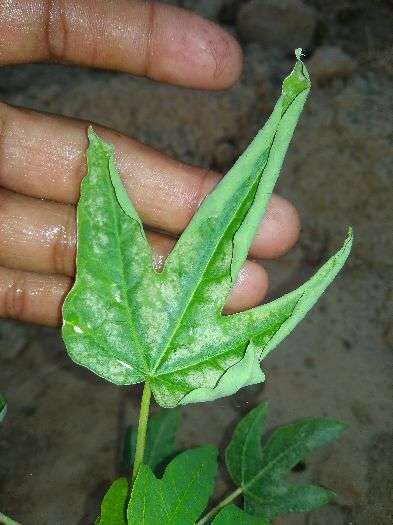 sachin ji agar isde patton ke uper white powder hai to yeh fungus ke karn ho raha hai iske liye aap copper oxychloride@3gm ko prati litre pani ke hisab se spray kare. iske ilava paudhe ko 3-4 killo vermi compost daalen is se paudhe ko sare tatv milege aur paudha aache se grow bhi karega.dhanywad