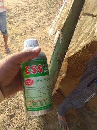 ਤੁਸੀ Calcimust gel 300ml ਕਰਕੇ ਲਗਾਤਾਰ 3 ਦਿਨ ਦਿਓ, ਇਸਦੇ ਨਾਲ ਤੁਸੀ Lapnil-P ਪਾਊਡਰ ਦੇਣਾ ਸ਼ੁਰੂ ਕਰੋ, ਇਸਦੀ 1 ਪੁੜੀ 75 ਗ੍ਰਾਮ ਦੀ ਹੁੰਦੀ ਹੈ ਉਸ ਨੂੰ ਅੱਧਾ ਕਿਲੋ ਬੇਸਨ ਵਿਚ ਮਿਲਾ ਕੇ ਦੇਣਾ ਸ਼ੁਰੂ ਕਰੋ, ਇਸ ਤ੍ਰਾਹ ਤੁਸੀ ਕੁੱਜ ਦਿਨ ਤਕ ਦਿੰਦੇ ਰਹੋ, ਇਸ ਨਾਲ ਫਰਕ ਪੈ ਜਾਵੇਗਾ, ਉਸਦਾ ਪਿੱਛਾ ਉਚਾ ਰੱਖੋ, ਤੂੜੀ ਘਟ ਪਾਓ.