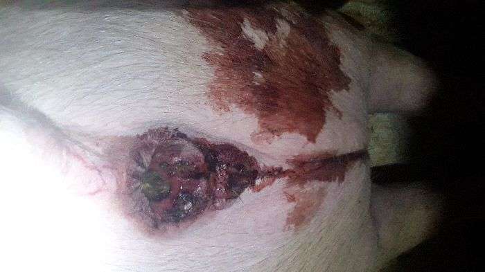 गुरप्रीत सिंह जी इस फोटो के हिसाब से लगता है कि उसके पिशाब वाली जगह पर सूजन है, आप इसे मीठा सोडा 2 चम्मच दें, इस कब्ज खुल जाएगी