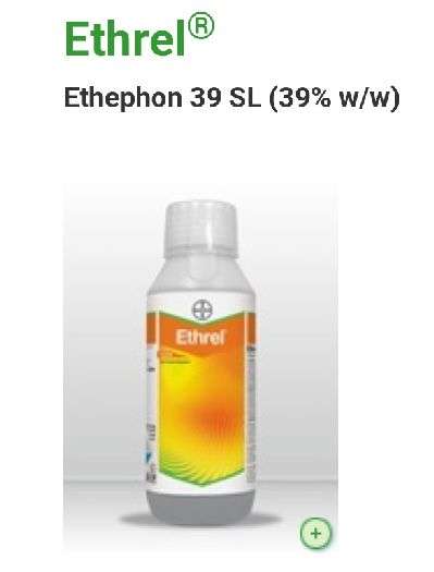 Ethrel ik growth promotor hai jisde vich ETHEPHON 39% SL nam da salt maujood hunda hai. isdi matra 1.5ml nu prati litre pani de hisab nal spray karo. dhanwad