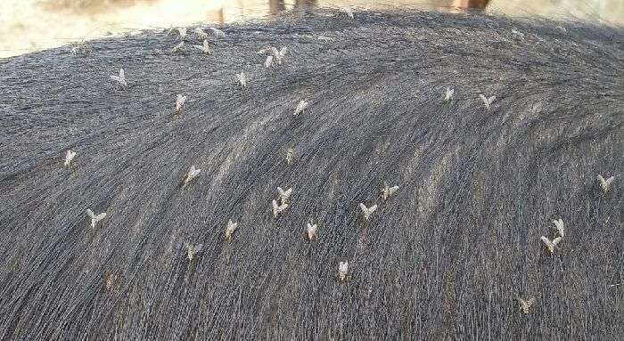 ਤੁਸੀ pailtox soap ਲਗਾਓ , ਇਹ ਤੁਸੀ ਪਸ਼ੂ ਨੂੰ ਨਹਾਉਣ ਤੋਂ ਬਾਦ ਚੰਗੀ ਤ੍ਰਾਹ ਝੱਗ ਕਰਕੇ ਪਸ਼ੂ ਉਪਰ ਅੱਧਾ ਘੰਟਾ ਲਗਾ ਰਹਿਣ ਦਿਓ ਫਿਰ ਬਾਦ ਵਿਚ ਨਹਾ ਦਿਓ, ਇਸ ਦਾ ਕੋਈ ਨੁਕਸਾਨ ਨਹੀਂ ਹੈ, ਇਸ ਨਾਲ ਚਮੜੀ ਵੀ ਵਧਿਆ ਰਹਿੰਦੀ ਹੈ, ਤੁਸੀ ਇਹ ਫੋਟੋ ਦੇਖ ਸਕਦੇ ਹੋ ਬਾਕੀ ਤੁਸੀ 1ml Butox ਨੂੰ 1 ਲਿਟਰ ਪਾਣੀ ਵਿਚ ਮਿਕਸ ਕਰਕੇ ਚਮੜੀ ਤੇ ਲਾਓ ਜੀ, ਇਸ ਨਾਲ ਮੱਖੀਆਂ ਤੋਂ ਆਰਾਮ ਮਿਲੇਗਾ. ਉਹਨਾਂ ਦੇ ਜਖਮ ਵਾਲੀ ਜਗ੍ਹਾ ਤੇ ਪਹਿਲਾ ਸਰੋਂ ਦਾ ਤੇਲ ਲਗਾਓ ਜੀ ਫਿਰ ਇਸ ਦਵਾਈ ਨੂੰ ਲਗਾਓ ਜੀ