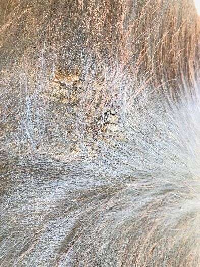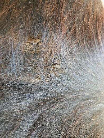 यह मक्खियों के कारण है, जख्मों पर नारियल का तेल लगाएं और फिर 2ml Tic-Tac को 1 लीटर पानी में मिलाकर स्प्रे करें