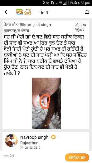 ਤੁਸੀ ਓਹਨਾ ਦੀ ਖੁਰਾਕ ਦਾ ਪੂਰਾ ਧਿਆਨ ਰੱਖੋ , ਕਿਉਕਿ ਵਧਿਆ ਖੁਰਾਕ ਨਾਲ ਹੀ ਪਸ਼ੂ ਦਾ ਦੁੱਧ ਵਧਿਆ ਹੁੰਦਾ ਹੈ , ਤੁਸੀ ਪਸ਼ੂਆਂ ਨੂੰ Fatplus ਜਾਂ Fatmax 50 ਗ੍ਰਾਮ ਪਾਊਡਰ ਵੀ ਦੇਣਾ ਸ਼ੁਰੂ ਕਰੋ , ਇਸ ਨਾਲ ਫੈਟ ਵਿੱਚ ਫਰਕ ਪੈ ਜਾਵੇਗਾ, ਬਾਕੀ ਤੁਸੀ Milkout ਪਾਊਡਰ 2-2 ਚਮਚ ਸਵੇਰੇ ਸ਼ਾਮ ਦਿਓ , ਇਸ ਨਾਲ ਦੁੱਧ ਵੱਧ ਜਾਵੇਗਾ, ਇਸਦੇ ਨਾਲ ਤੁਸੀ Flukrid-DS ਦਵਾਈ ਦੀ ਗੋਲੀ ਦਿਓ ਅਤੇ Livoferrol liqued 50 ਮਿਲੀ ਰੋਜਾਨਾ ਦਿਓ ਜੀ ,ਇਸ ਨਾਲ .... (Read More)