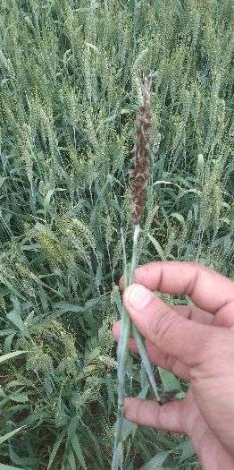 Manish ji yeh karnal burnt nam ki bimari hai jis se Bali men daana nahi banta iske liye aap tilt@200ml ko 150 litre Pani ke hisab se spray karen.dhanywad