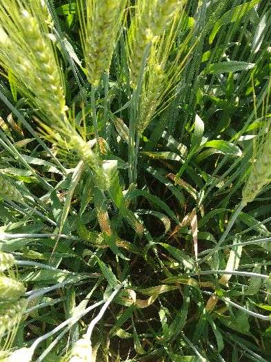 gurtej ji kanak de patteya nu hath laun te jekar haldi vala powder hathan nu lagda hai ta eh peeli kungi da hamla hai isde layi tuc mancozeb@2gm prati litre ja tilt@2ml prati litre pani de hisab nal spray karo. dhanwad