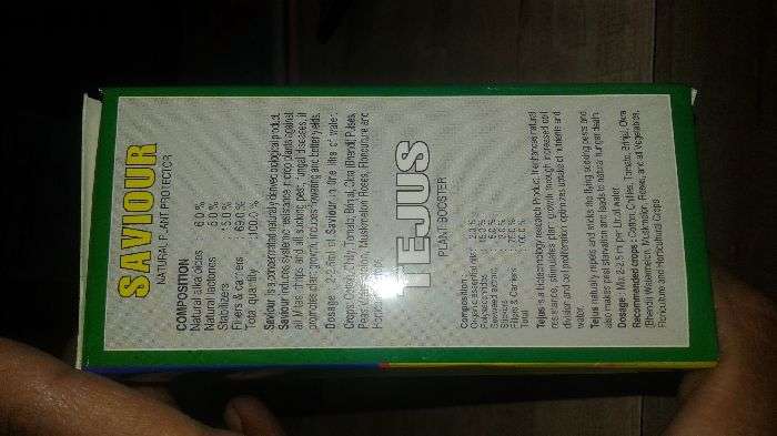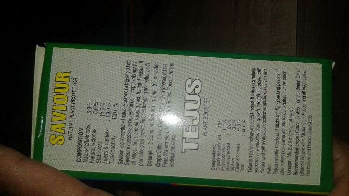 virpal ji eh natural product han. saviour ik keetnashak hai jo tele, chepe di roktham de layi vartya janda hai. isdi matra 2-2.5ml prati litre pani de hisab nal spray kiti jandi hai. Tejus ik plant booster hai jo fasl di growth de layi istemal kita janda hai isdi matra 2-2.5ml prati litre pani de hisab nal varti jandi hai. dhanwad