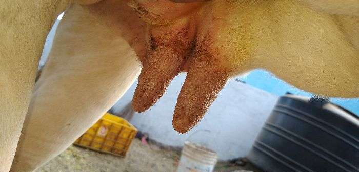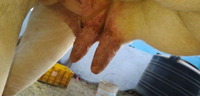 अआप उसके थन के जख्म पर Topicure स्प्रे करें, इसके साथ आप उसको Avil injection 10ml, DCR 2.5gm लगवाने शुरू करें इनके साथ जल्दी ठीक हो जायेगा क्योंकि यह जख्म को अंदर से सूखा देंगे