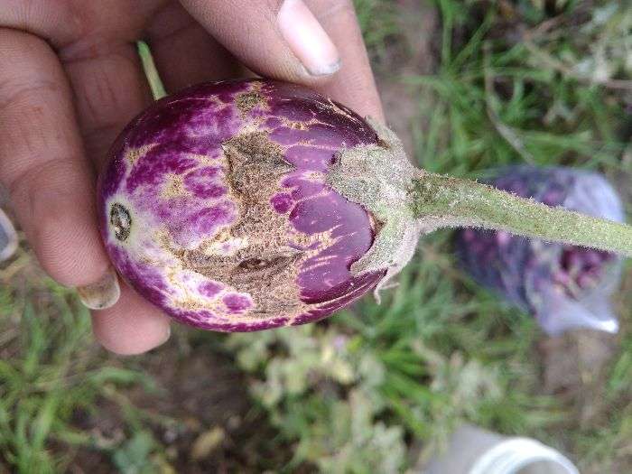 Dimple kumar ji isde vich sundi da hamla hai jisde karn bengan eda ho rahe han isde layi tuc Cypermethrin@2.4 ml/10Ltr pani de vich mila ke spray karo isde nal hi fungicide M-45@4gm prati litre pani de hisab nal spray karo. dhanwad