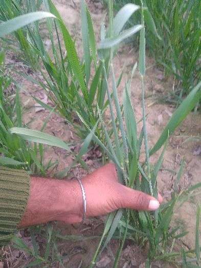 ਕਣਕ ਵਿੱਚ ਪਾਣੀ ਜਿਆਦਾ ਖੜਾ ਹੋਣ ਨਾਲ ਪਤੇ ਪੀਲੇ ਹੋ ਜਾਂਦੇ ਹਨ ਕਿਉਂਕਿ ਇਸ ਵਿੱਚ ਮੈਗਨੀਜ ਦੀ ਘਾਟ ਆ ਜਾਂਦੀ ਹੈ ਇਸ ਦੀ ਰੋਕਥਾਮ ਲਈ ਮੈਗਨੀਜ @1 ਕਿਲੋ ਪ੍ਰਤੀ ਏਕੜ ਦੇ ਹਿਸਾਬ ਨਾਲ ਸਪਰੇਅ ਕਰ ਸਕਦੇ ਹੋ
