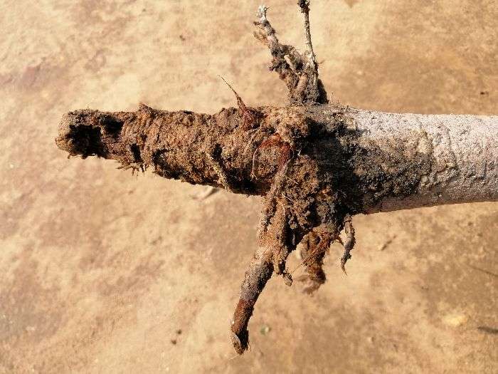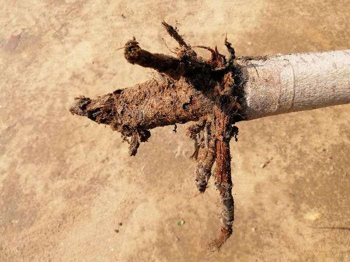 ਸੁਖਚੈਨ ਜੀ ਇਹ ਸਿਉਂਕ ਦਾ ਹਮਲਾ ਹੈ ਜਿਸਦੇ ਕਾਰਨ ਜੜਾਂ ਏਦਾਂ ਹੋ ਰਹੀਆਂ ਹਨ ਇਸਦੇ ਲਈ ਤੁਸੀ chlorpyriphos@4ml ਨੂੰ ਪ੍ਰਤੀ ਲੀਟਰ ਪਾਣੀ ਦੇ ਵਿਚ ਮਿਲਾ ਕੇ ਜੜਾਂ ਦੇ ਵਿਚ ਪਾਓ ਧੰਨਵਾਦ