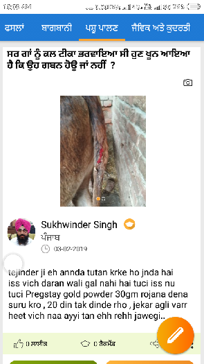 Tejinder singh ji ehh isde anndar koi jakham hoon to v ho skda hai , jiis krke ehh varr varr repeat ho jndi ha ya infection ho skda hai , tuci iss nu DCR injection 2.5gm , injection Avil 10ml lgwao , fir jddo agli varr heet vich auugi tan tuci pehla tika 24 hours badd bhrwao atte dujja tika 65-70 hours de vich vich bhrwao , atte tikka bhrwa ke Pregstay gold powder 50gm rojana dena suru kro ji , iss trah rehh jawegi.