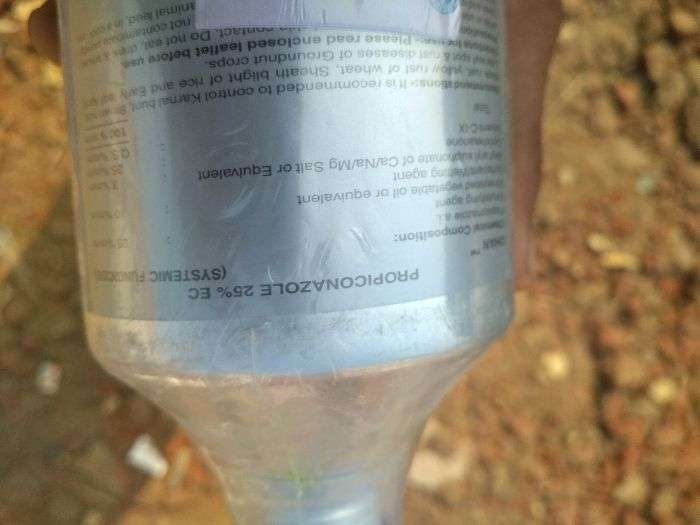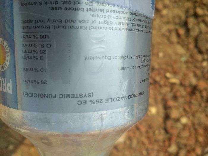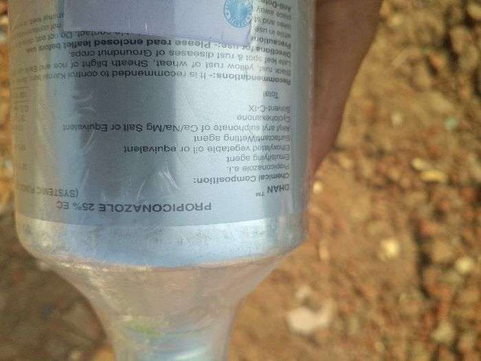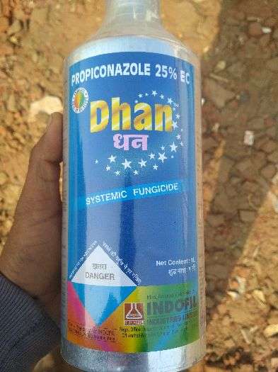 Dhan vich Propiconazol name da salt hunda hai jo fungicide hai.esdi dose @200 ml per acre hai and 1 liter 5 acre vich use hunda hai