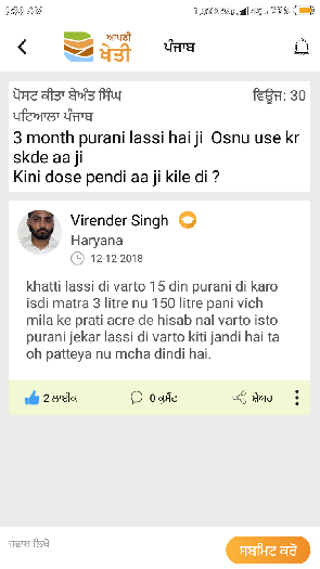 ਇਕ ਸਾਲ ਪੁਰਾਣੀਆਂ 8 ਪਾਥੀਆਂ ਨੂੰ ਪਲਾਸਟਿਕ ਦੇ ਡ੍ਰਮ ਵਿੱਚ 35 ਲਿਟਰ ਪਾਣੀ ਵਿੱਚ ਡਬੋ ਦਿਓ 4 ਦਿਨ ਛਾਂਵੇਂ ਰੱਖ ਦਿਓ ਫੇਰ ਪਾਥੀਆਂ ਕੱਢ ਕੇ ਪਾਣੀ ਨੂੰ 90 ਲਿਟਰ ਪਾਣੀ ਵਿੱਚ ਮਿਲਾ ਕ ਖੇਤ ਵਿੱਚ ਸਪਰੇ ਕਰੋ ਇਹ ਪਾਣੀ ਲਘੂ ਤੱਤਾਂ ਦੀ ਘਾਟ ਨੂੰ ਪੂਰਾ ਕਰਦਾ ਹੈ ਤੇ ਫਸਲ ਦਾ ਚੰਗਾ ਵਿਕਾਸ ਹੁੰਦਾ ਹੈ