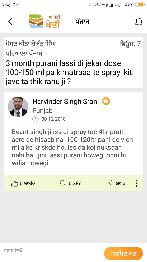 Mandeep Singh g kirpa krke knak de problem bare dsso ta jo oss de hisab nal tuhanu spray di shi jaankari ditti ja ske