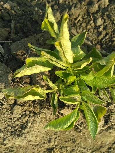 ਇਸਦੇ ਪੱਤੇ ਏਦਾਂ ਹੋਣ ਦੇ ਦੋ ਕਾਰਨ ਹੋ ਸਕਦੇ ਹਨ ਪਹਿਲਾ ਕੇ ਇਸਦੇ ਵਿਚ ਮੱਛਰ ਦਾ ਅਸਰ ਹੈ ਜਿਸਦੇ ਕਾਰਨ ਪੱਤੇ ਮੁੜਨਾ ਸ਼ੁਰੂ ਹੋ ਜਾਂਦੇ ਹਨ ਜੇਕਰ ਬੂਟੇ ਨੂੰ ਹਿਲਾਉਣ ਤੇ ਇਸਦੇ ਵਿੱਚੋ ਮੱਛਰ ਉਡਦਾ ਹੈ ਤਾ imidacloprid@1.5ml ਨੂੰ ਪ੍ਰਤੀ ਲਿਟਰੇ ਪਾਣੀ ਦੇ ਹਿਸਾਬ ਨਾਲ ਸਪਰੇ ਕਰੋ ਦੂਜਾ ਕਾਰਨ ਕੋਰਾ ਹੋ ਸਕਦਾ ਹੈ ਜਿਸਦੇ ਲਈ ਤੁਸੀ ਫ਼ਸਲ ਨੂੰ ਹਲਕੀ ਸਿੰਚਾਈ ਕਰੋ