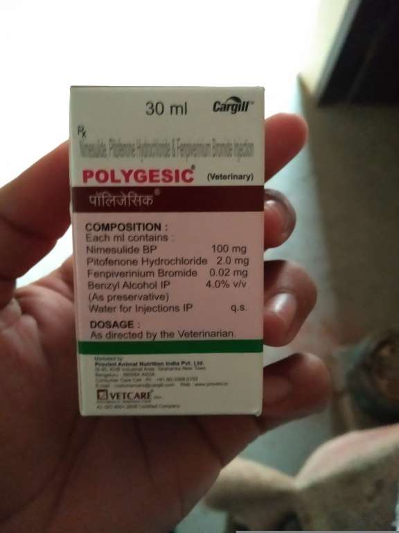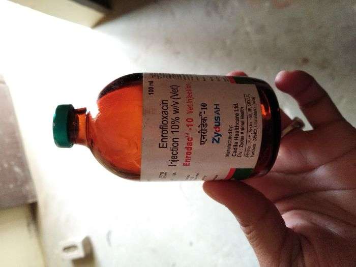 jekar pashu vdia sehat wala hai tan tuci Enrofloxacin 20ml tak lga skde ho , ehh Antibiotics injection hai jo har trah de infection vich kam krda hai ate polyegsic injection dard , sojish vich kam krda hai , ehh large animal lyi 1ml / 25 kg body weight de hisab nal lgwao skde ho..