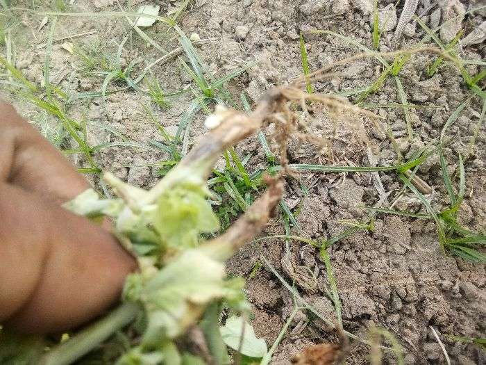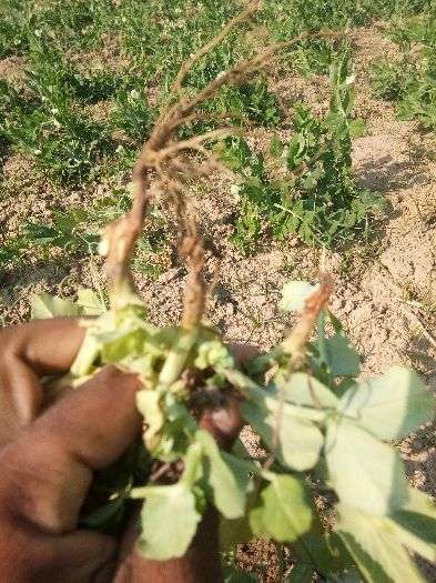 मांगीलाल जी आप पौधे को 20-22 दिन के अंतराल पर फंगीसाइड की स्प्रे करें और आप पौधे को gibberellic acid की स्प्रे करें, इससे पौधे की ग्रोथ हो जाएगी