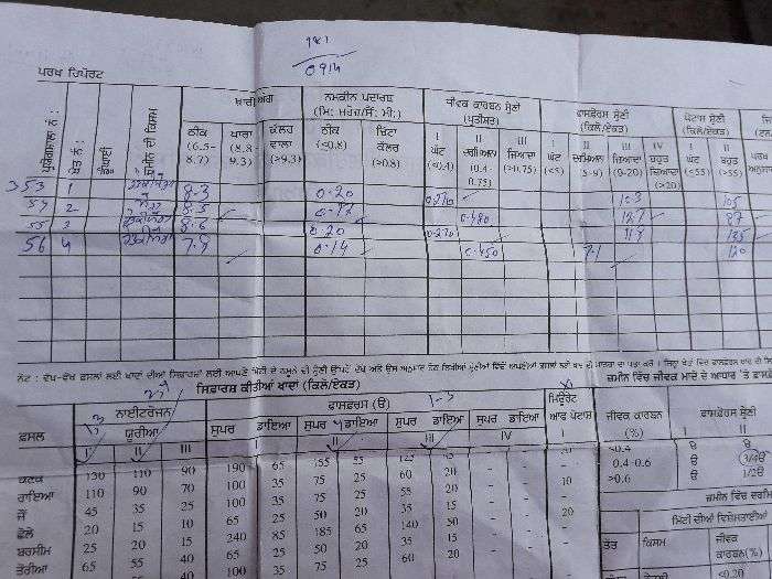 ਤੁਹਾਡੇ ਖੇਤ ਦੀ ਮਿੱਟੀ ਪਰਖ ਦੇ ਅਧਾਰ ਤੇ ਤੁਹਾਨੂੰ ਪਹਿਲੇ ਅਤੇ ਤੀਜੇ ਖੇਤ ਵਿਚ 130 ਕਿੱਲੋ ਯੂਰੀਆ ਵਰਤਣ ਦੀ ਸਿਫਾਰਿਸ਼ ਕੀਤੀ ਗਈ ਹੈ ਦੂਜੇ ਅਤੇ ਚੌਥੇ ਖੇਤ ਵਿਚ 110 ਕਿੱਲੋ ਯੂਰੀਆ ਵਰਤਣ ਦੀ ਸਿਫਾਰਿਸ਼ ਕੀਤੀ ਗਈ ਹੈ ਜੇਕਰ DAP ਦੀ ਗੱਲ ਕੀਤੀ ਜਾਏ ਤਾ 1-3 ਖੇਤ ਵਿਚ 55 ਕਿੱਲੋ ਪ੍ਰਤੀ ਏਕੜ ਦੇ ਹਿਸਾਬ ਨਾਲ ਵਰਤੋਂ ਅਤੇ ਚੌਥੇ ਖੇਤ ਵਿਚ 45 ਕਿੱਲੋ DAP ਦੀ ਵਰਤੋਂ ਕਰਨ ਦੀ ਸਿਫਾਰਿਸ਼ ਕੀਤੀ ਗਈ ਹੈ