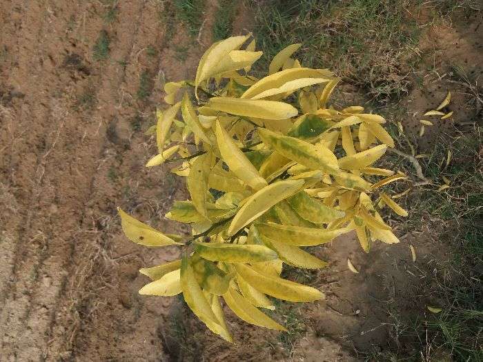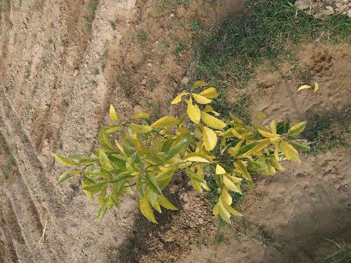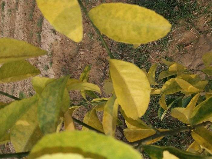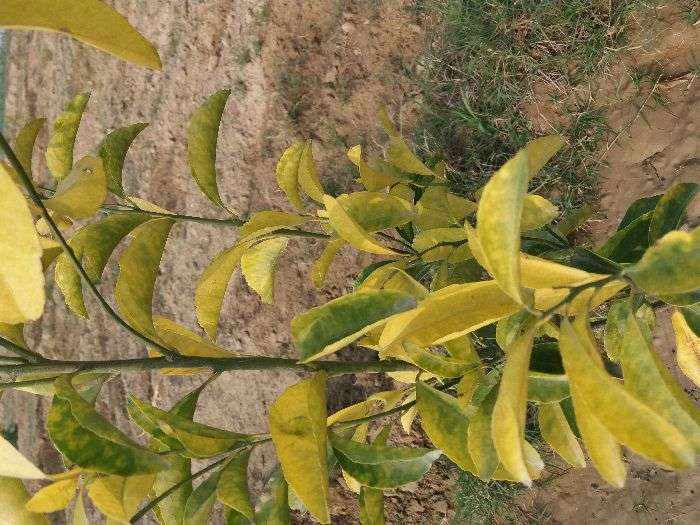 यह ज़रूरी तत्व की कमी है जिसके कारण पत्ते पीले पड़ने शुरू हो जाते है इसकी रोकथाम के लिए zinc sulphate@3 gm प्रति लीटर पानी के हिसाब से स्प्रे करें, इससे पत्ते ठीक हो जाएंगे