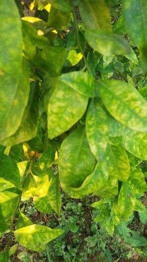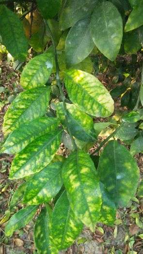 किन्नू के पत्तों में जिंक की कमी है इसकी रोकथाम के लिए जिंक सल्फेट 3 ग्राम प्रति लीटर पानी के हिसाब से स्प्रे करें