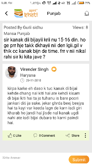 eh kisman di bijai tuc december mahine vich kar sakde ho. eh kisman 128 -133 din laindiyan han pakkan de layi.