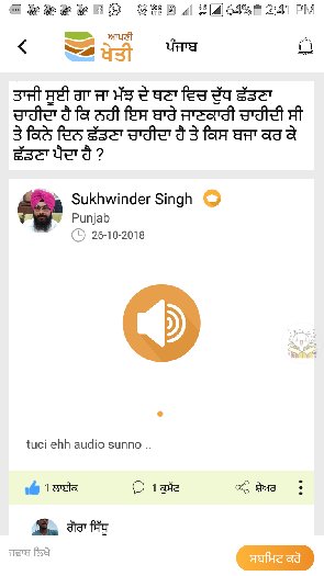 ਹਾਜੀ ਤੁਹਾਡਾ ਬਹੁਤ ਬਹੁਤ ਧੰਨਵਾਦ ਆਪਣੀ ਖੇਤੀ ਐਪ ਬਾਰੇ ਆਪਣਾ ਸੁ੍ਝਾਅ ਦੇਣ ਲਈ ਬਾਕੀ ਹੋਰ ਵੀ ਪੋਲਟਰੀ ਮਾਹਿਰਾਂ ਨੂੰ ਐਪ ਤੇ ਨਾਲ ਜੋੜ ਕੇ ਪੋਲਟਰੀ ਦੇ ਸਵਾਲਾ ਦੇ ਜਵਾਬ ਜਲਦੀ ਤੁਹਾਡੇ ਤੱਕ ਪਹੁੰਚਾਉਣ ਦੀ ਕੋਸ਼ਿਸ਼ ਕਰਾਂਗੇ ਤੇ ਬਹੁਤ ਜਲਦੀ ਹੀ ਤੁਹਾਨੂੰ ਪੋਲਟਰੀ ਨਾਲ ਜੁੜੇ ਸਵਾਲਾ ਦੇ ਜਵਾਬ ਜਲਦੀ ਮਿਲਿਆ ਕਰਣਗੇ ਜੀ ਧੰਨਵਾਦ