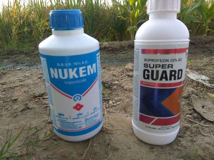 ਕਾਲੇ ਤੇਲੇ ਦੀ ਸ਼ੁਰੂਆਤ ਵਿਚ ਤੁਸੀ ਇਸ ਦੀ ਰੋਕਥਾਮ ਦੇ ਲਈ ਤੁਸੀ chess@120 ਗ੍ਰਾਮ ਜਾਂ dentop@35 ਗ੍ਰਾਮ ਨੂੰ 150 ਲੀਟਰ ਪਾਣੀ ਦੇ ਨਾਲ ਮਿਲਾ ਕੇ ਪ੍ਰਤੀ ਏਕੜ ਤੇ ਸਪਰੇਅ ਕਰ ਸਕਦੇ ਹੋਂ ਤੇਲਾ ਪੈਣ ਤੋਂ ਪਹਿਲਾ ਇਹਨਾਂ ਦੀ ਸਪਰੇਅ ਕਰੋ ਇਸ ਤੋਂ ਇਲਾਵਾ ਜੇਕਰ ਤੇਲਾ ਜਿਆਦਾ ਫੈਲ ਗਿਆ ਹੈ ਤਾਂ ਉਸ ਦੀ ਰੋਕਥਾਮ ਦੇ ਲਈ 1 ਲੀਟਰ DDVP ਨੂੰ 12 ਕਿਲੋਗ੍ਰਾਮ ਸੁੱਕੀ ਰੇਤ ਦੇ ਨਾਲ ਮਿਲਾ ਕੇ ਖੇਤ ਦੇ ਵਿੱਚ ਛਿੱਟਾ ਦਿਓ ਇਸ ਤੋਂ ਬਿਨਾ ਤੁਸੀ koram 300 ਮਿਲੀਲੀਟਰ ਜਾਂ acetamiprid 20EC @60-80 ਗ੍ਰਾਮ ਜਾਂ acephate@500 ਗ੍ਰਾਮ ਨੂੰ 150 ਲੀਟਰ ਪਾਣੀ ਦੇ ਨਾਲ ਮਿਲਾ ਕੇ ਪ੍ਰਤੀੌ ਏਕੜ ਤੇ ਸਪਰੇਅ ਕਰ ਦਿਓ ਇਸ ਤੋਂ ਇਲਾਵਾ ਤੁਸੀ ਝੋਨੇ ਦੇ ਵਿੱਚ actara @80 ਗ੍ਰਾਮ ਜਾਂ buprofezin@200 ਮਿਲੀਲੀਟਰ ਨੂੰ 150 ਲੀਟਰ ਪਾਣੀ ਦੇ ਨਾਲ ਮਿਲਾ ਕੇ ਪ੍ਰਤੀ ਏਕੜ ਤੇ ਸਪਰੇਅ ਕਰੋ