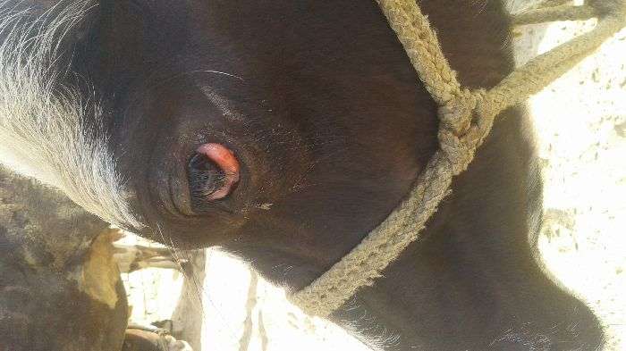 Es nu Bolus Fandikind plus 3gm goli body weight de hisab nal deo te eye ch shree de patte nu ragged ke pani kadd ke pani din vich 3 varr pao ji