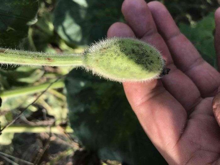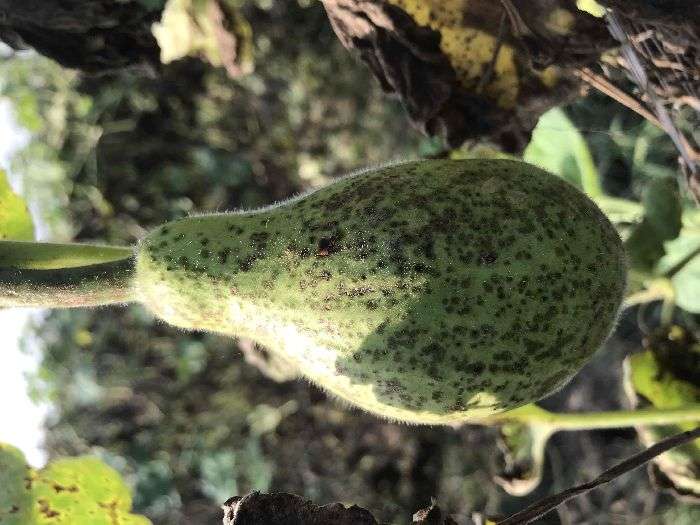 je eh fal vel de neeche vl nu mitti naal jude hoe hn tan eh meeh de kaarn iste is trh de nishaan pai gye hn. is ton ilava jekr edan nhi hai tan eh fungus de kaarn nishaan pai rhe hn. isdi roktham lyi M-45@400gm prti acre de hisaab nal vrto.