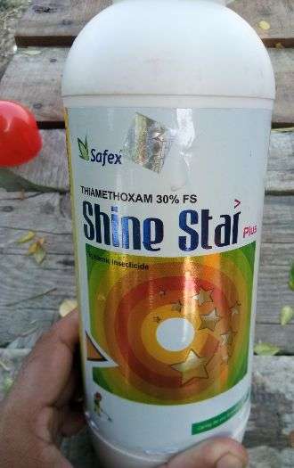 SHINE STAR (Thiamethoxam 30 % FS) ਇੱਕ ਕੀਟਨਾਸ਼ਕ ਹੈ ਜੋ ਤੇਲੇ, ਚੇਪੇ, ਚਿੱਟੀ ਮੱਖੀ ਦੀ ਰੋਕਥਾਮ ਕਰਦੀ ਹੈ.. ਇਸਦੀ ਮਾਤਰਾ 100ml ਪ੍ਰਤੀ ਏਕੜ ਲਈ ਵਰਤੋਂ...ਇਸ ਦਾ ਅਸਰ 15-18ਦਿਨਾਂ ਤੱਕ ਰਹਿੰਦਾ ਹੈ
