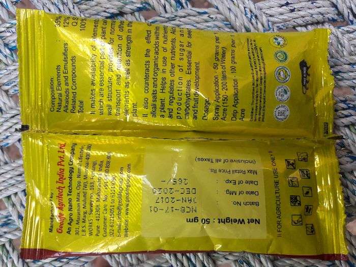 eh ik mutinutrient powder hai jis nal fasl da vadha vadhia hunda hai ate isde nal fruit di qualit vadia bandi hai. isdi matra 50 gm nu 150 litre pani vich mila ke prati acre dheisab nal spray karo.
