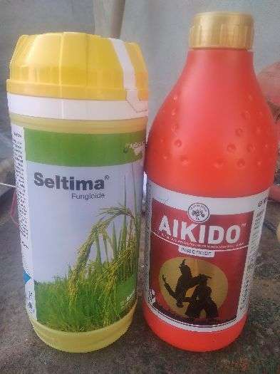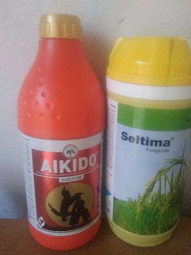 SELTIMA ik fungicide hai jis vich Pyraclostrobin nam da salt maujood hunda hai .isdi matra ik acre de lyi 200 ml da istemal kita janda hai..AIKIDO ik keetnashk hai jo tele di roktham lyi vrti jandi hai atey isdi matra 400ml prti acre lyi vrti jandi hai..