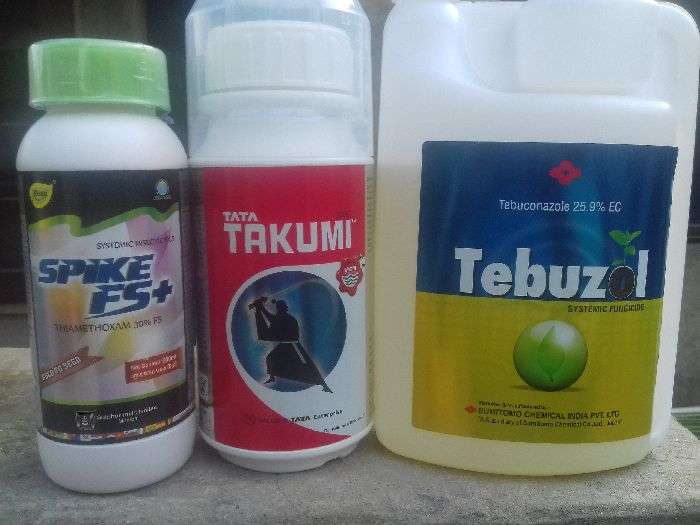 Fame soondi di roktham krdi hai. ihh bayer company di aundi hai iss di maatra 20ml per acre hai. jo valida hai iss di maatra 300-400ml hai ihh sheath blight rokdi hai. jo ecochamp hai jis de vich thiamethoxam salt aunda hai uss di maatr 80gm per acre hai ohh tele nu mardi hai.