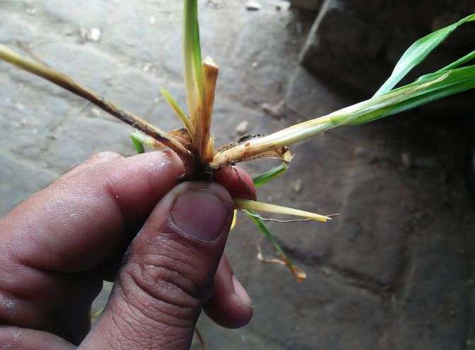iss de vich jdaa de vich fungus di problem lgg rhi hai. jiss karn jdaa kalia ho rhia hnn ate kanak peeli pai rhi hai. iss di roktham de lyi 400gm saaf ja sixer nu 150 ltr paani de nal mila ke prati acre te spray kro.