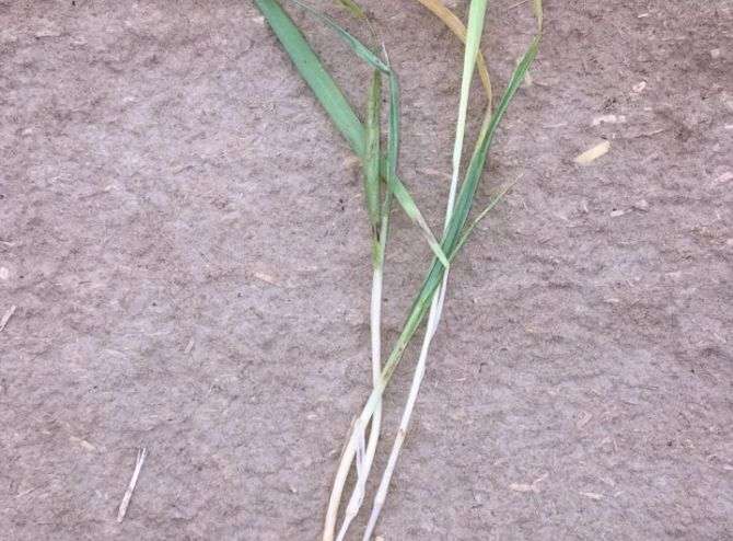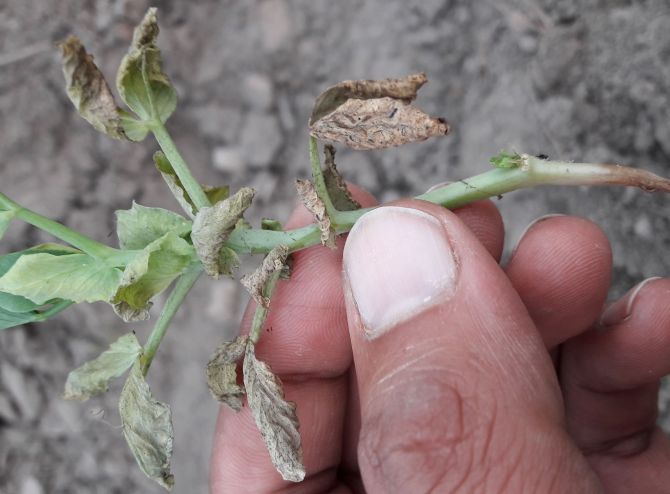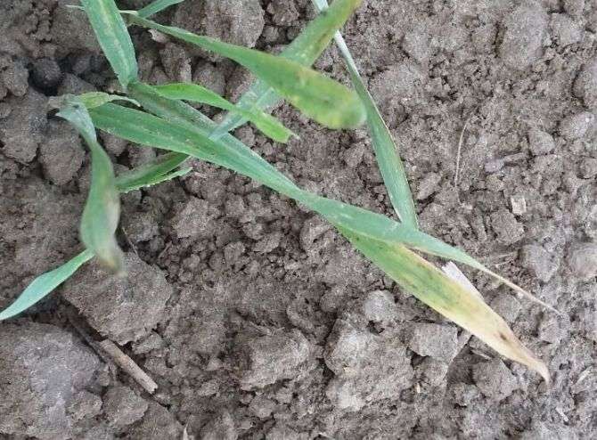 yeh bimaari 2 karno se ho skti hai. pehla kaarn yeh hai ki iss khet ke ander nematode ho skta hai. us ke liye app jdo mein ganthe jrur dekhe. agr gaanthe hai toh uske liye 7 kg furadan prati acre mein dalein. .agr seedhe patte sookh rhe hai aur dhabbe pdh rhe hai. toh uske liye 500gm thiophanate methyl ki 150 ltr paani mein daal kar prati acre ke hisaab se spray kre.