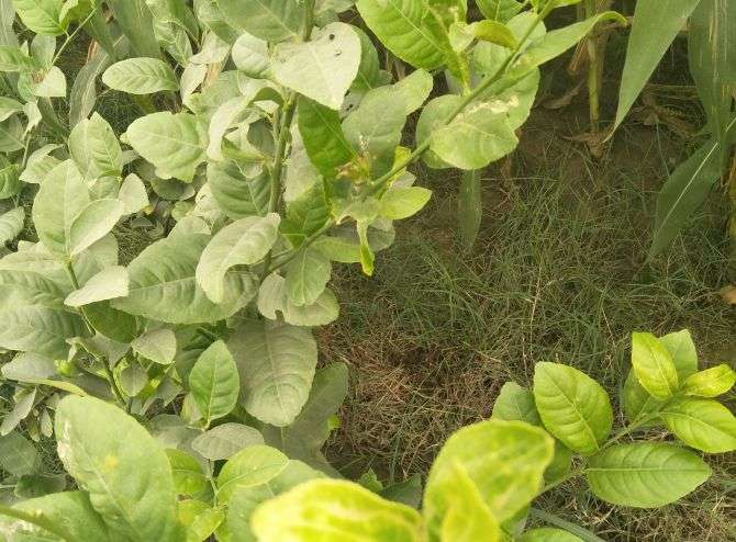 nimbo de bute te leaf folder da attack hai. tusi esde control de lyi Ekalux 2-3 ml parti litre pani de hisab nal spray karo.