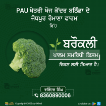 | broccoli plants are available Pau Regional Research Center | Regional Research Center Jodhpur Romana Farm, Bathinda | 10 Nov 2022 5:42:34 PM | - | |