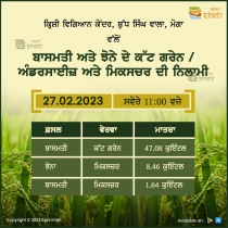 | Auction notice of Paddy Basmati Cutgrain/Mixture through open auction KVK, Moga | Krishi Vigyan Kendra, Budh Singh Wala, Moga | 17 Feb 2023 12:10:20 PM | - | |