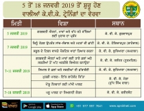 | 5 ਤੋਂ 18 ਜਨਵਰੀ 2019 ਤੋਂ ਸ਼ੁਰੂ ਹੋਣ ਵਾਲਿਆਂ ਕੇ. ਵੀ. ਕੇ ਟ੍ਰੇਨਿੰਗਾਂ ਦਾ ਵੇਰਵਾ | Punjab Agricultural University, Ludhiana | 4 Jan 2019 1:29:03 PM | - |