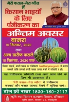 | Last opportunity for farmers to register in “Meri fasal- Mera Byora” | Agriculture and Farmers Welfare Department, Haryana | 11 Sep 2020 9:47:56 AM | - | |